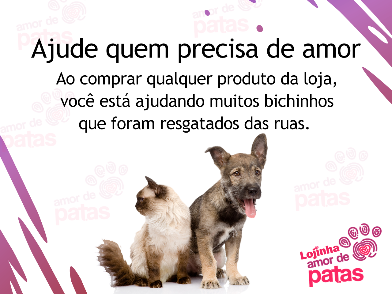 Bem-vindo à lojinha virtual do Amor de Patas. Aqui você poderá adquirir todos os nossos produtos personalizados e nos ajudar a continuar salvando vidas.